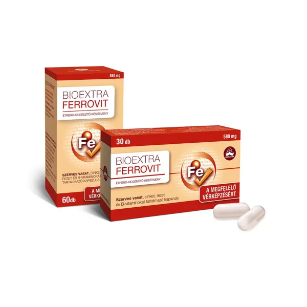 A Bioextra Ferrovit kapszula vas-fumarátot, vagyis szerves vasat tartalmaz, melyet a szervezetünk szinte teljes egészében képes hasznosítani. A készítményt mindemellett azért is érdemes vaspótlásra választani, mert összetevőinek kombinációja több oldalról is támogatja a vérképzést, a cink, réz, folsav, B6- és B12-vitaminok teljes napi ajánlott mennyiségének fedezésével.