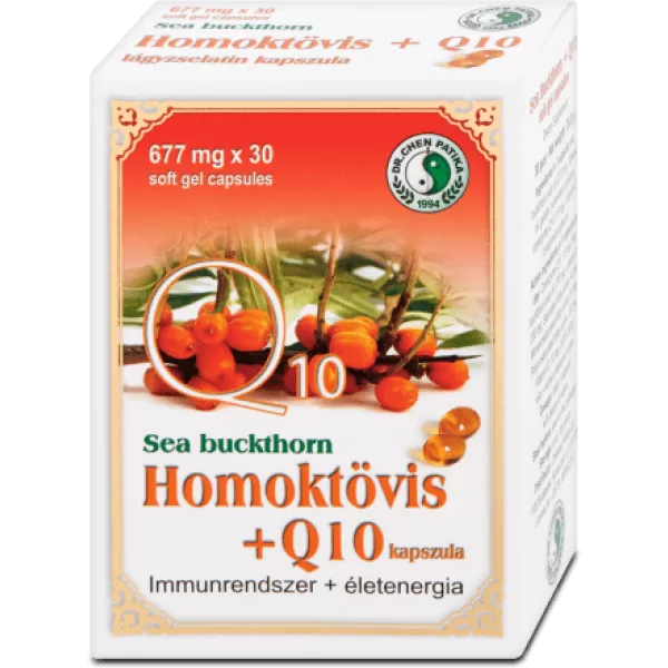 Homoktövis gyümölcshús olajat, lenmagolajat, Q10 koenzimet és E-vitamint tartalmazó étrend-kiegészítő készítmény.