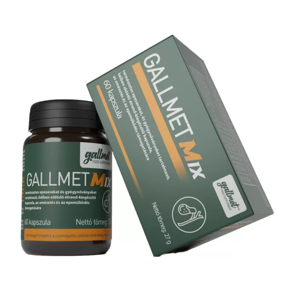 GALLMET-MIX természetes epesavakat és gyógynövényeket tartalmazó, bélben oldódó étrend-kiegészítő kapszula, az emésztés és az epeműködés támogatására. A borsmenta szerepet játszik a puffadás csökkentésében, a fehér mályvával együtt hozzájárul a gyomor- és bélrendszer normál működéséhez. Az orvosi pemetefű segíti a béltraktus ellazulását, hozzájárul az egészséges emésztéshez, a máj és az epe normál működéséhez. Az édesgyökér támogatja az emésztőrendszer egészséges működését. Az édeskömény hozzájárul az egészséges emésztéshez.