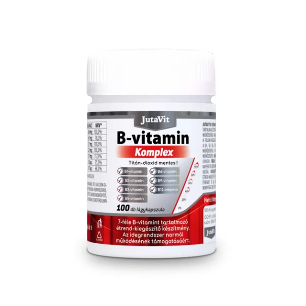 JutaVit B-vitamin komplex. Titánium-dioxid mentes! 7-féle B-vitamint tartalmazó étrend-kiegészítő készítmény.