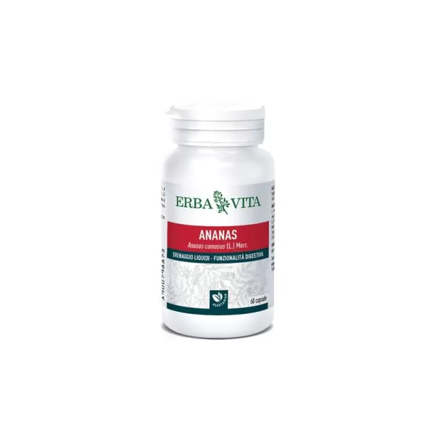 Ananász (Ananas sativus)-szár kivonat (250 GDU/g), tömegnövelő szer: mikrokristályos cellulóz, kapszulatok-V-caps: hidroxi-propil-metilcellulóz.