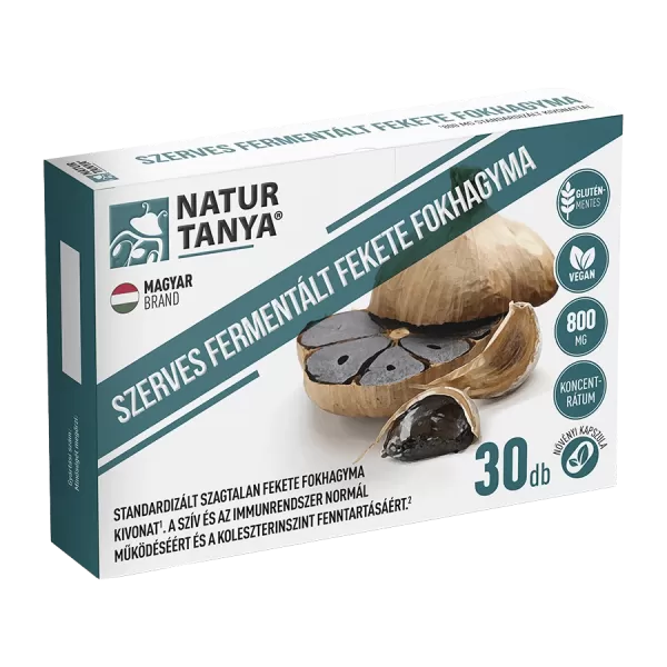 A Natur Tanya Fermentált Fekete Fokhagyma 800 mg kapszula 30 db készítmény a szív és immunrendszer normál működéséért, valamint a homocisztein és koleszterinszint fenntartásáért felel.