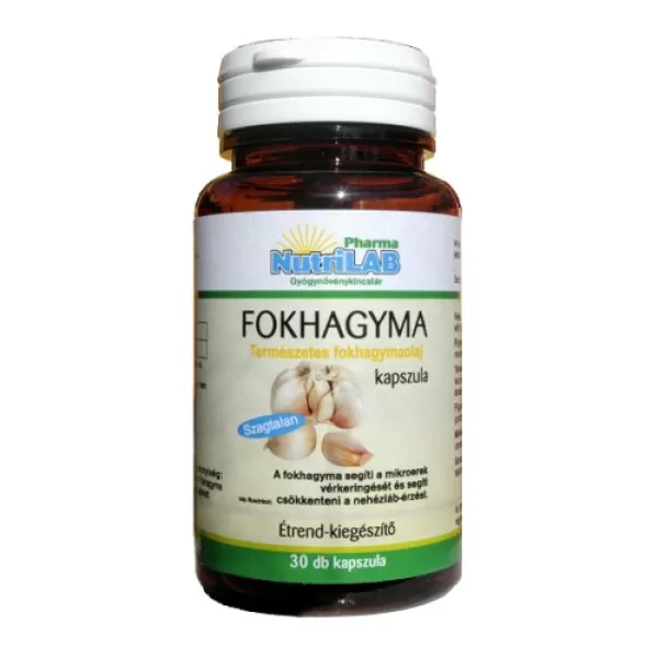 Szagtalan, természetes fokhagyma olaj. A fokhagyma segíti a mikroerek vérkeringését és csökkenti a nehézláb-érzést.