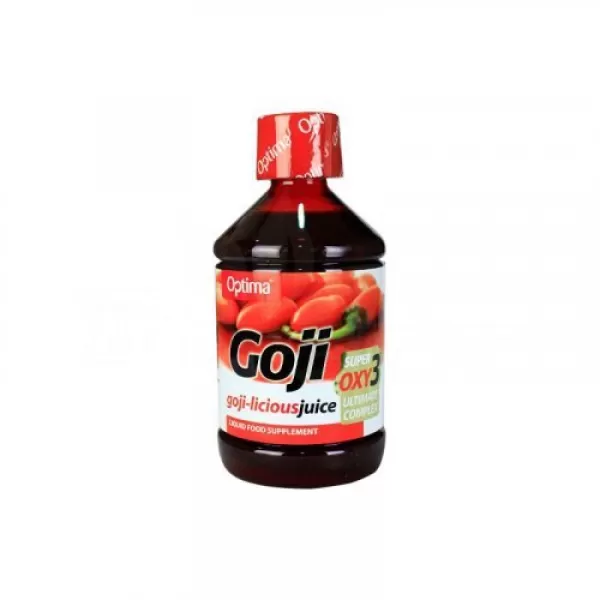 goji sűrítmény, OXY 3™ 10% (OXY 3™ egy Optima által szabadalmaztatott keveréke a vörös szőlőnek, likopinnek és a rezveratrolnak), antioxidáns: aszkorbinsav, tartósítószer: kálium-szorbát