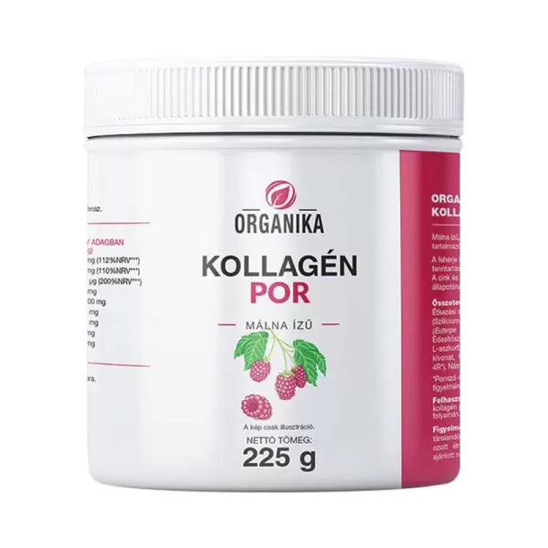 Málna ízű, kollagént, cinket, C-vitamint és hialuronsavat tartalmazó por édesítőszerekkel.