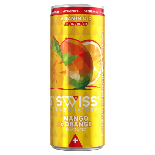 Swiss Vitamins VITAMIN C+D brazil mangó ízű, szén-dioxiddal dúsított, alkoholmentes ital, cukorral és édesítőszerekkel, hozzáadott vitaminokkal és svájci fűszernövény kivonatokkal.