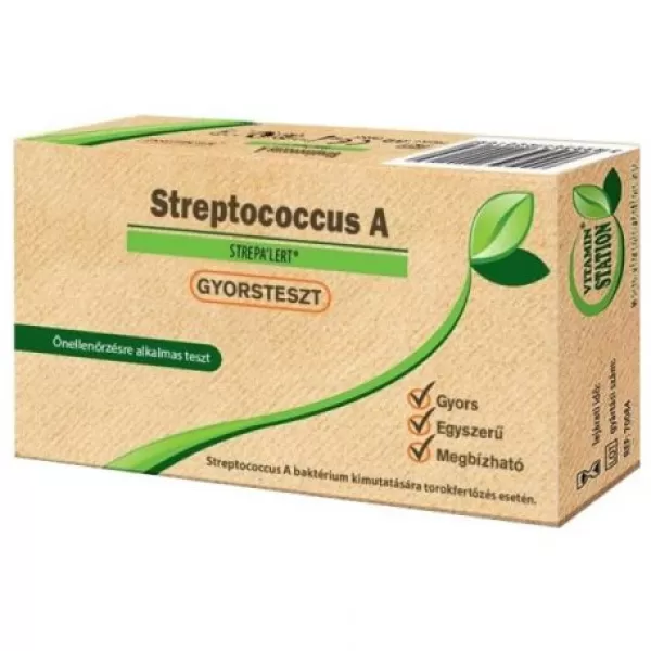 Önellenőrzésre szolgáló gyorsteszt, az A csoportú béta hemolizáló Streptococcus baktérium kimutatására torokfertőzés esetén.