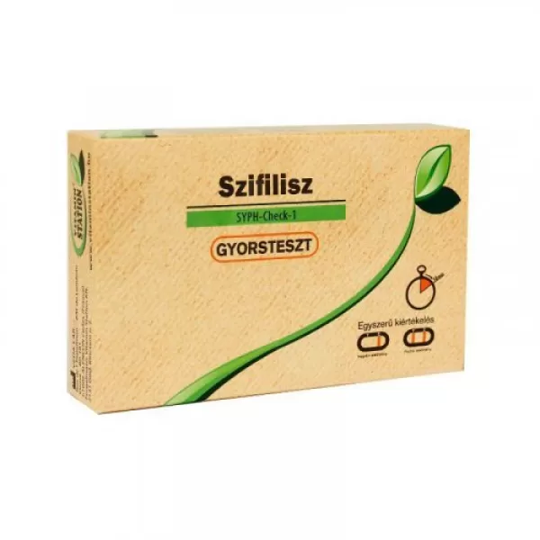 Szifilisz gyorsteszt: Önellenőrzésre szolgáló teszt a Treponema Pallidum kórokozó ellen termelt antitestek kimutatására egy csepp vérből.